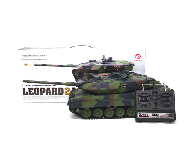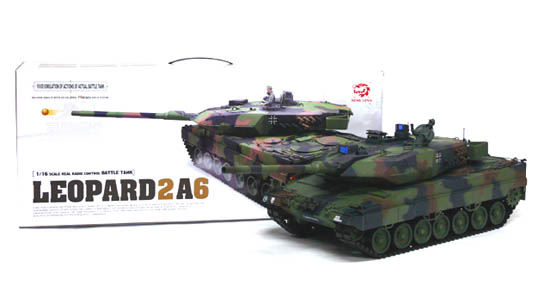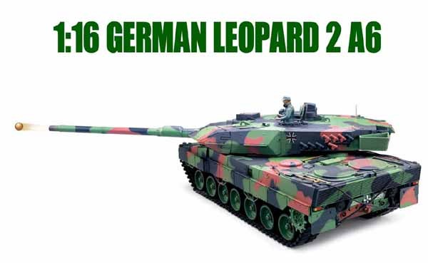 Czołg Leopard 2A6 posiada wszystkie standardowe funkcje modeli Heng Long: