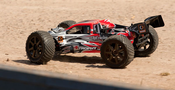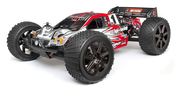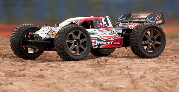Seria HPI Trophy wyposażono w radio 2.4GHz zapewniające pełna kontrolę i umożliwiające korzystanie w pełni z walorów modelu. Radio posiada koło odpowiedzialne za skręcanie oraz spust, którym hamujemy i przyspieszamy modelem, 3 kanały, wygodne w użytkowaniu, składana antena, możliwość regulacji punktów końcowych, bieg wsteczny oraz opcja sterowania dual rate. Aparatura jest bardzo lekka z powodu zasilania tylko 4 bateriami AA.