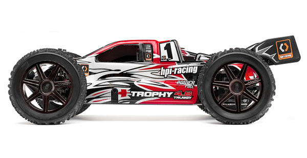 - Fabrycznie złożony i wstępnie malowany model nitro Trophy z napędem 4WD