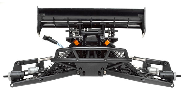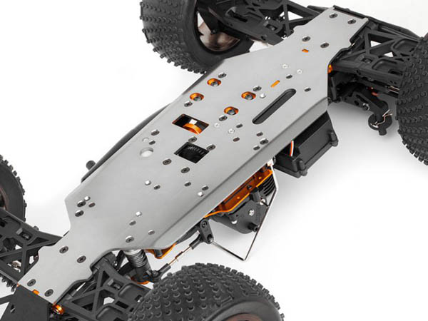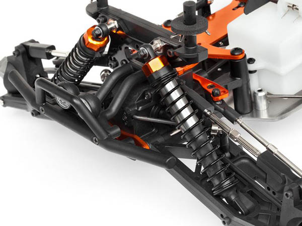 Zawieszenie i układ kierowniczy to prawdziwe arcydzieło Trophy Truggy 4.6 wyposażono w realistyczne zawieszanie rajdowe, aby zapewnić dobrą kontrole oraz czas reakcji na najwyższym poziomie! Długie wahacze poprzeczne w każdym rogu zrobione z grubego, odpornego na uderzenia tworzywa wykonany w kształcie płetwy dla zwiększenia wytrzymałości. Amortyzatory olejowe wyposażono w aluminiowe osłony, dla zwiększenia wytrzymałości.